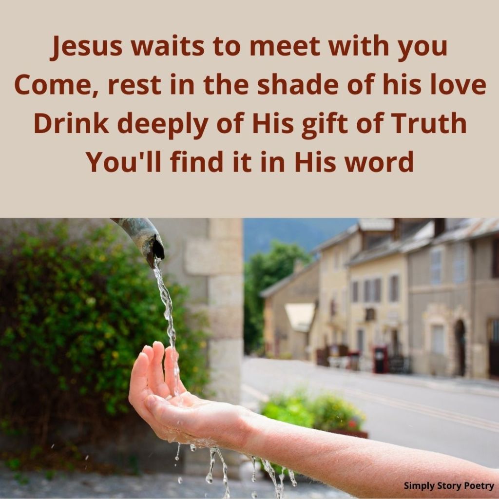 A verse from ‘Thirst Quenching‘ poem based on the Bible story of The Woman at the Well.