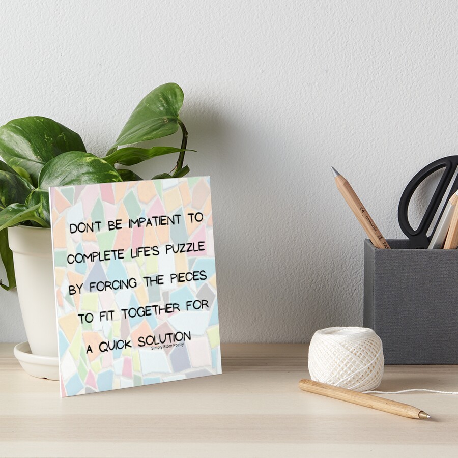 Don’t be impatient to complete life’s puzzle by forcing the pieces to fit together for a quick solution.