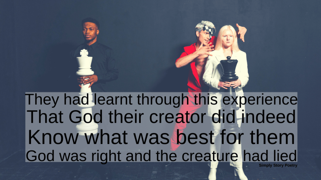 A verse from my poem ‘Wrong Game Move’ Part two of a four-part series based on the Bible Story of Adam and Eve.