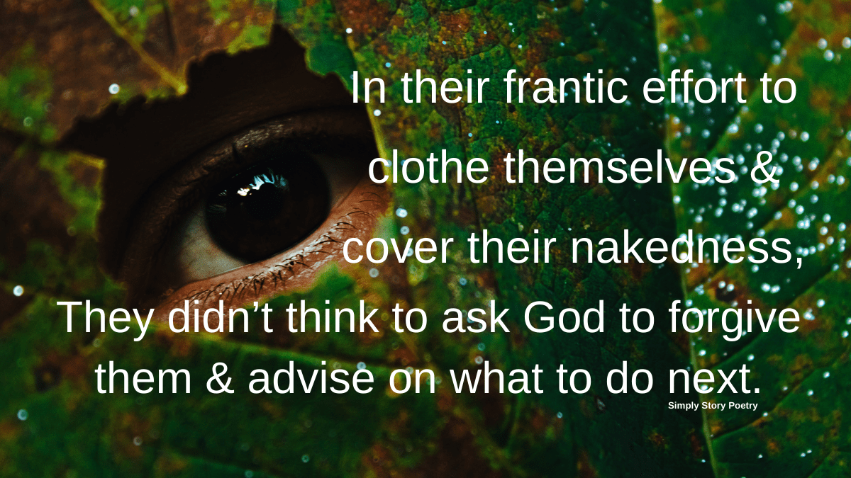 Why not listen to or read the whole story of Adam and Eve – Eve’s Story Part 1, Wrong Game Move Part 2, The Blame Game Part 3, But wait…God Made a Promise Part 4