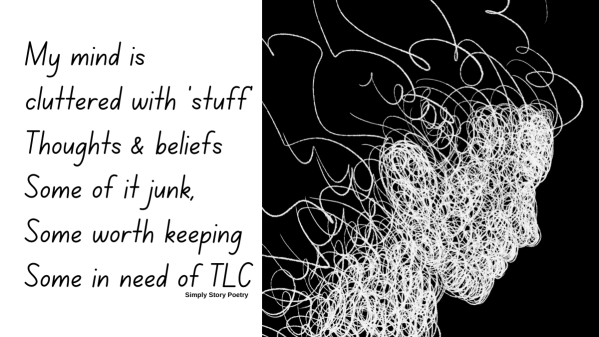 My mind is cluttered with 'stuff' Thoughts and beliefs Some of it junk Some worth keeping Some in need of TLC. A verse from my poem 'Clear Up My Cluttered Mind. Beverley Joy of Simply Story Poetry You can BUY my poems and verses at beverleyjoy.redbubble.com Image by ๆๆจๆททๆ ช Cdd20 from Pixabay