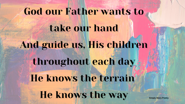 God our Father wants to take our hand And guide us, His children, throughout each day He knows the terrain, He knows the way. A verse from my poem 'Walking with Our Heavenly Father'. Beverley Joy of Simply Story Poetry