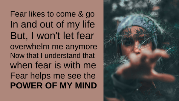 Fear likes to come and go in and out of my life But, I wonโt let fear overwhelm me anymore Now that I understand that when fear is with me Fear helps me see the power of my mind. From my poem 'Hello Fear' Beverley Joy of Simply Story Poetry You can BUY my poems... Continue Reading →